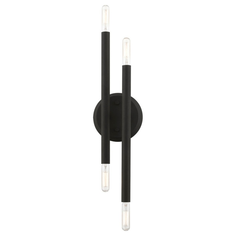 An iconic wall sconce, the Soho features a black finish. Ideal for bathrooms, dining room settings or entryways, these space-aged inspired pieces are so versatile they can be incorporated into a variety of interiors. -Bulb Wattage: 60 -Number of Bulbs: 4 -
