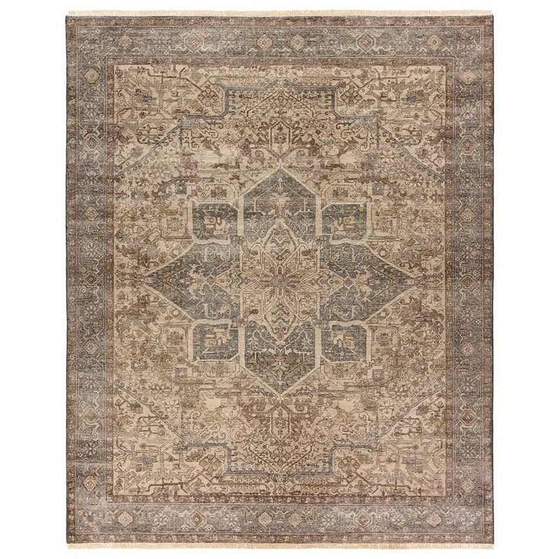 TheSomeplace in TimecollectionsAnzad rugartfully blends nostalgia with modern sophistication through its rich, hand-knotted craftsmanship. Featuring a traditional-inspired pattern with intricate floral detailing, a central medallion, and an elegant border, this piece exudes vintage charm in a palette of brown, beige, cream, blue, and green. Woven from handspun wool for an authentically timeworn look, the rug adds luxe appeal to any space while maintaining artisanal integrity. Perfect for those who appreciate heritage design with a contemporary twist, the Anzad rug grounds interiors with its whimsical yet refined character.