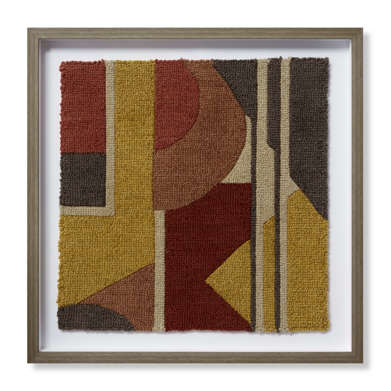 Defined by strong shapes and deep colors, Soulmate is a Cubist inspired art piece crafted of multi-level yarns. Perfect for todays Mid-century modern interiors or any space high design and bold art feel at home.