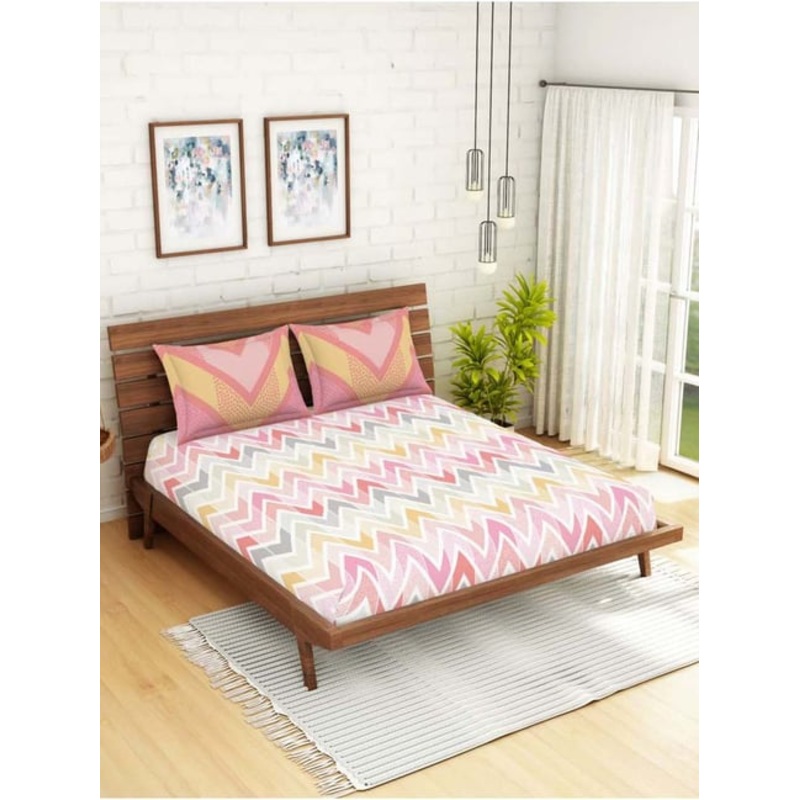 Spaces ATRIUM ECOM Multicolor Cotton 144 TC Double Bedsheet with 2 Pillow Covers