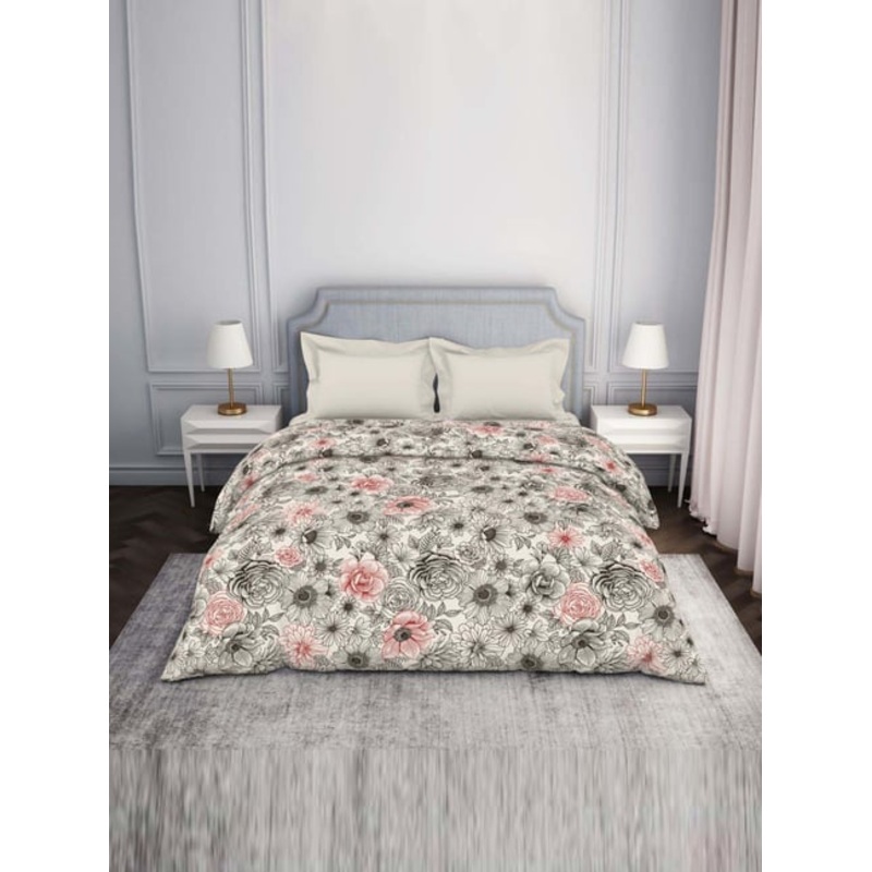 Spaces Atrium Grey & Pink 100% Cotton 144 TC Double Bed Ac Quilt
