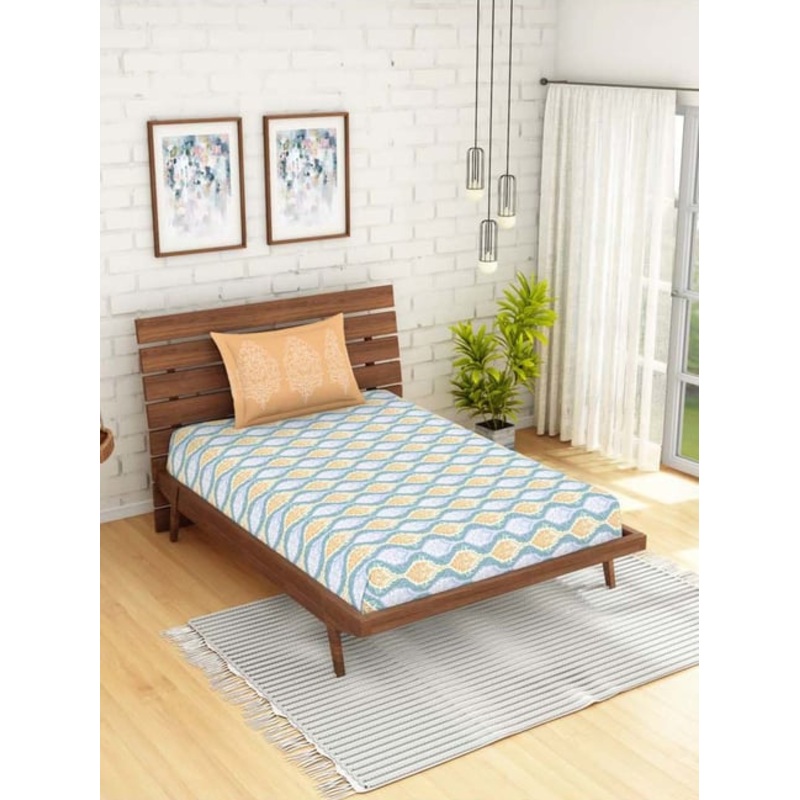 This set of 1 bedsheet and 1 pillow cover from Spaces has a clever technology that regulates temperature, to turn cool in summer and warm in winter. A revolutionary technology to regulate temperature for relaxed sleep in a blend of performance and aesthetics. It has a TC of 210. Crafted from cotton, it is soft and durable.