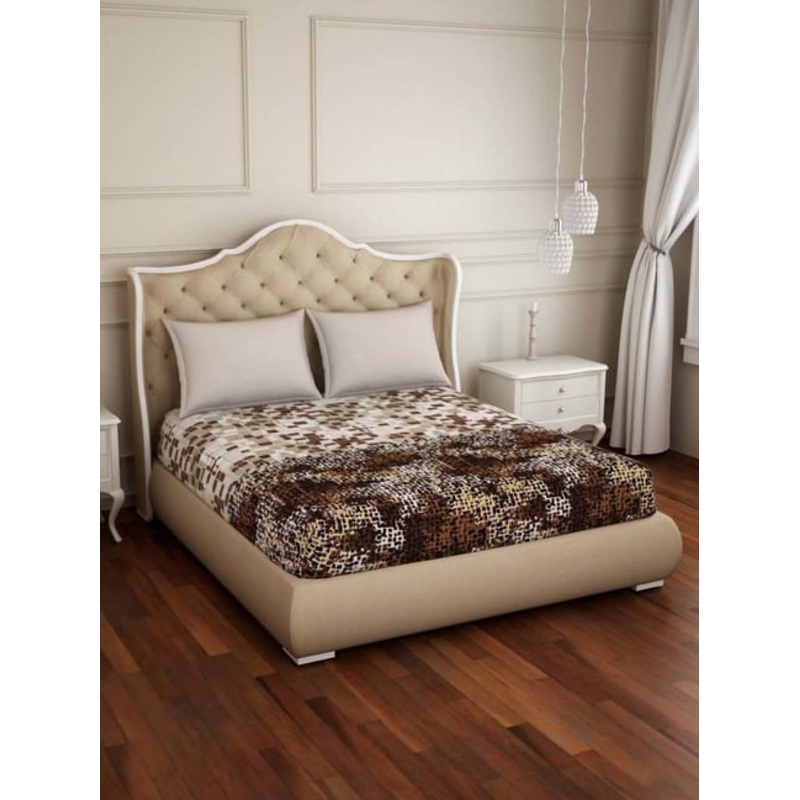 Spaces ATRIUM PLUS ECOM Brown Cotton 210 TC King Fitted Bedsheet with 2 Pillow Covers