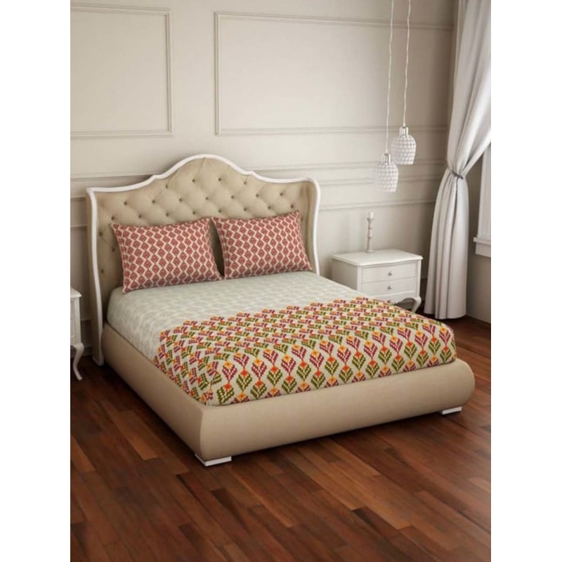 Spaces ATRIUM PLUS ECOM Green & Maroon Cotton 210 TC King Fitted Bedsheet with 2 Pillow Covers