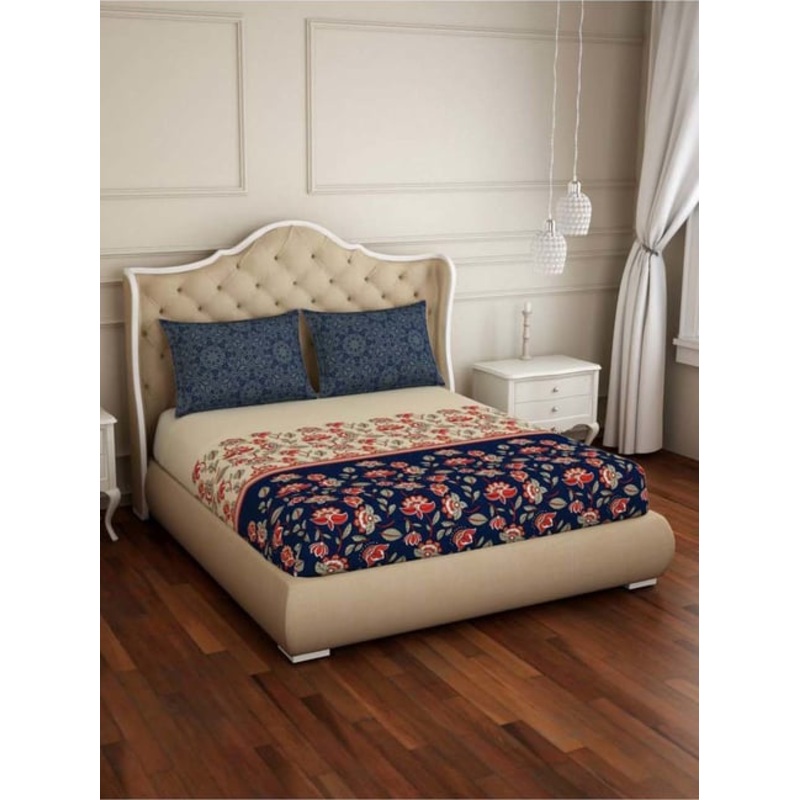 This set of 1 fitted bedsheet and 2 pillow covers from Spaces has a clever technology that regulates temperature, to turn cool in summer and warm in winter. A revolutionary technology to regulate temperature for relaxed sleep in a blend of performance and aesthetics. Crafted from cotton, it is soft and durable. It has a TC of 210.