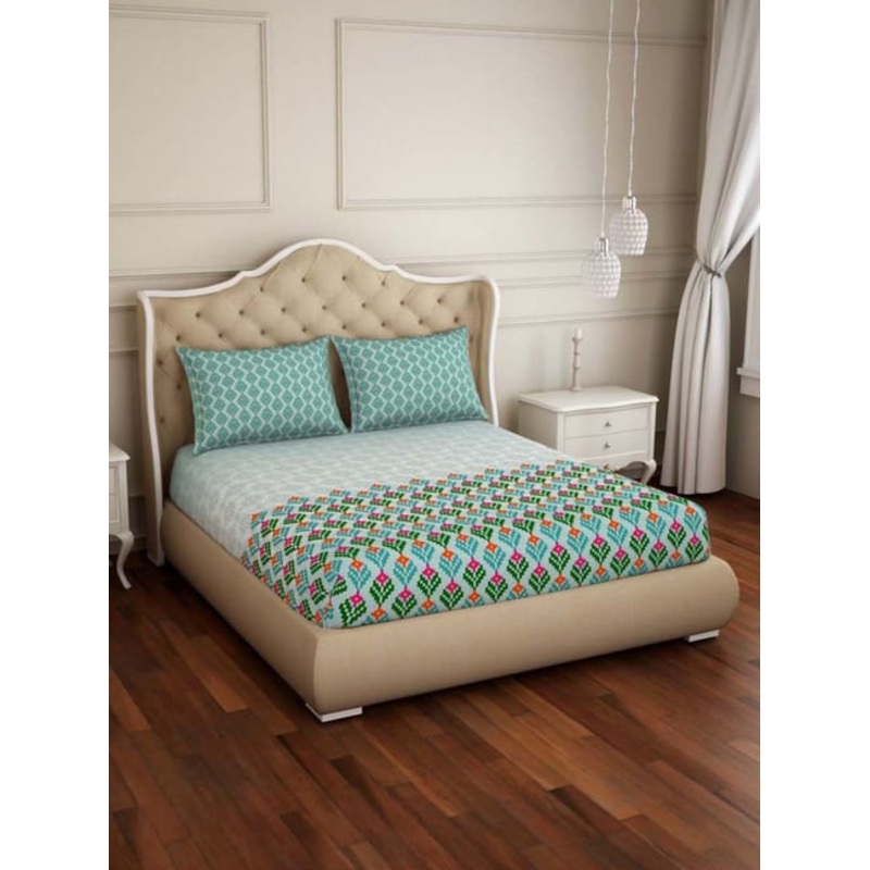 Spaces ATRIUM PLUS ECOM Teal Green Cotton 210 TC Double Bedsheet with 2 Pillow Covers