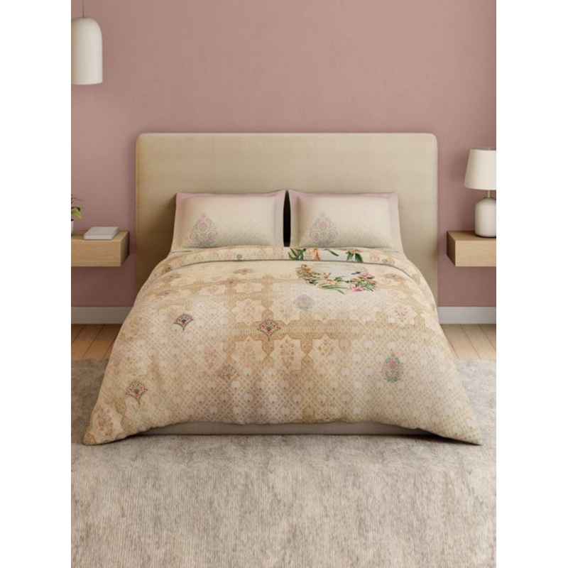 Ecru floral bedsheet, beige color, digital print, cotton percale, soft, breathable, 132 TC, full-size bedsheet and covers.