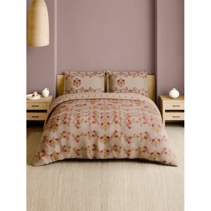 Made from 100% cotton sateen, this large bedsheet is digitally printed for rich, festive colors. Safe for skin and eco-friendly with recycled water usage. Includes bedsheet (274×274 cm) and pillow covers (43×68 cm). Features 210 TC thread count for smooth, breathable comfort all season.