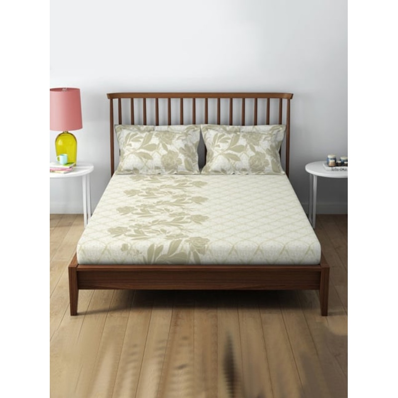 Spaces Cotton Floral Beige 132 TC Double Bedsheets
