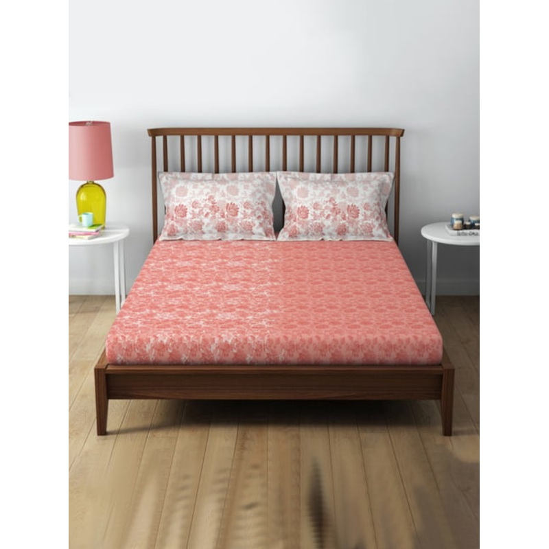 Spaces Cotton Floral Pink 132 TC Double Bedsheets
