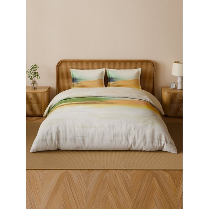 Bright orange abstract print, organic cotton percale, digitally printed. Safe, breathable, 180 TC, includes large sheet and pillow covers."Ideal For ": " Home""Pattern ": " Abstract""Fabric Weave ": " Cotton""Sheet Type ": " Bed Sheets""Fabric Quality (TC)