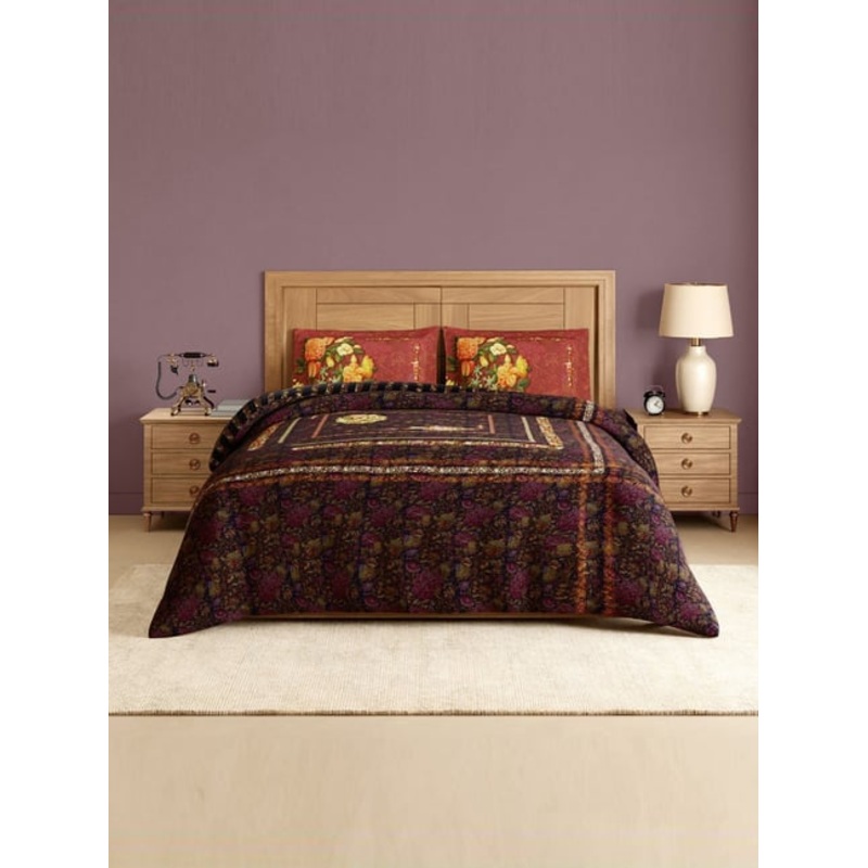 Violet charm with SPACES Rangana Swarna Comforter in dark violet, ornate patterns for elegant warmth. 100% cotton festive and skin-safe, recycled water 224cm x 270cm double size. Easy upkeep: wash at 40C, tumble dry low, avoid bleach and dry cleaning, no iron.