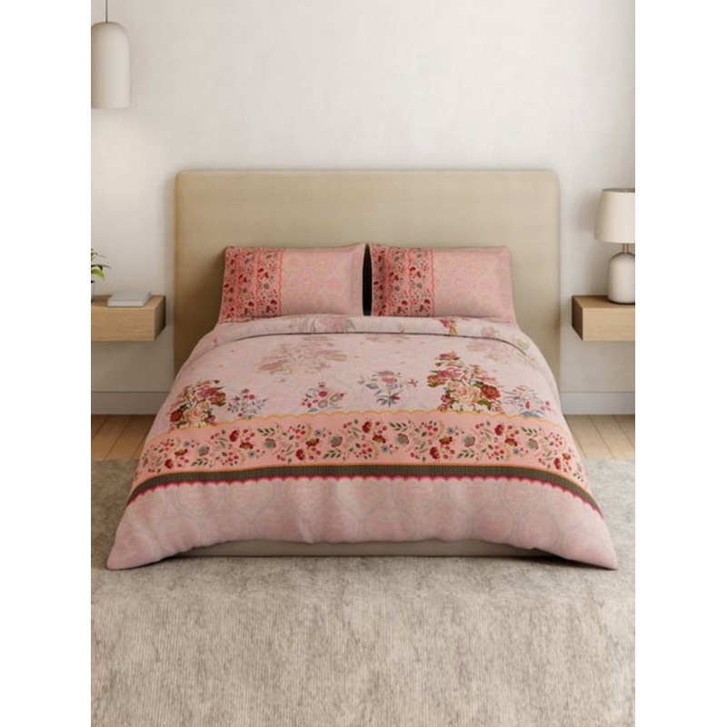 Spaces Cotton Pink Floral 132 TC Double Size Bedsheet with 2 Pillow Covers