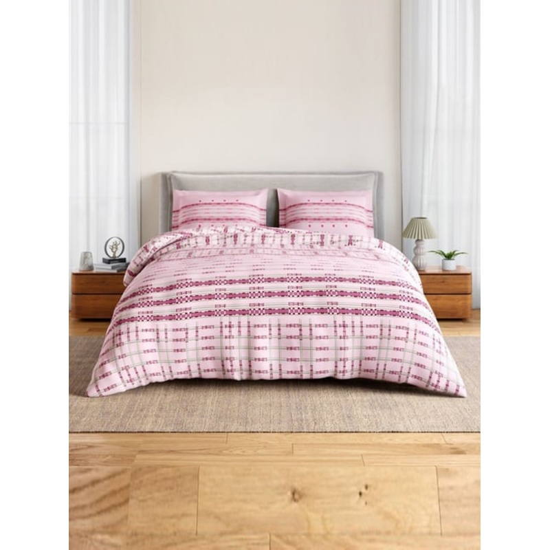 Spaces Cotton Pink Geometric 144 TC Double Size Bedsheet with 2 Pillow Covers