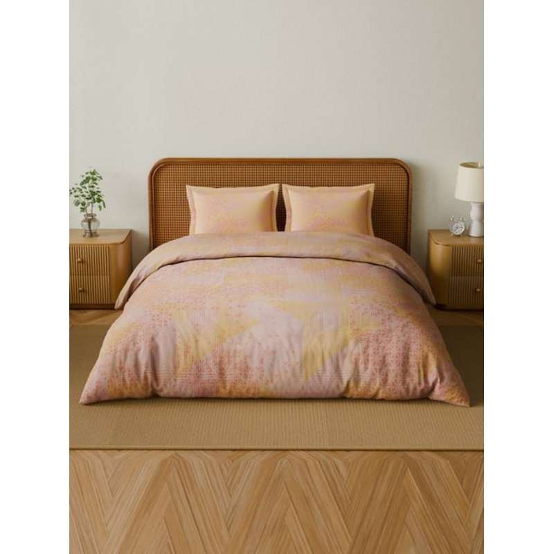Light blush geometric design on organic cotton percale, digitally printed. Safe for skin and breathable, with a thread count of 180. Set features large bedsheet and pillow covers."Ideal For ": " Home""Pattern ": " Geometric""Fabric Weave ": " Cotton""Sheet