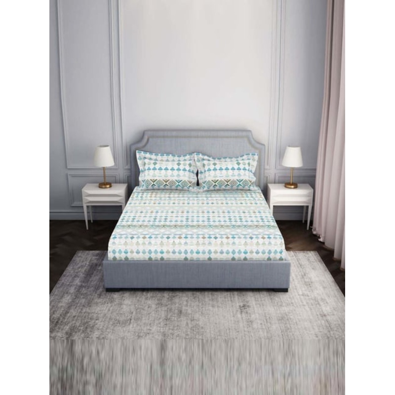 Spaces Essentials AW24 138 Turquoise Blue Viscose 138 TC Double Bedsheet with 2 Pillow Covers