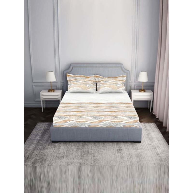 Elevate your bedroom decor with this set of 1 double bedsheet and 2 pillow covers from Spaces. Thoughtfully crafted to add a touch of sophistication, this bedding set promises both style and comfort. The bedsheet and pillow covers are designed to effortles