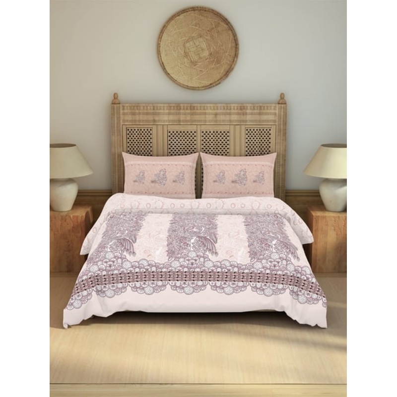 Spaces Kalamkari Blush Cotton Printed 210 TC Double Bedsheet with 2 Pillow Covers