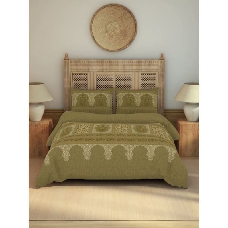 Transform your bedroom into a tranquil oasis with our Spaces kalamkari dark green cotton printed double bedsheet. Crafted from premium 210 tc cotton, this luxurious set includes 2 pillow covers for a complete look. The intricate kalamkari print adds a touc