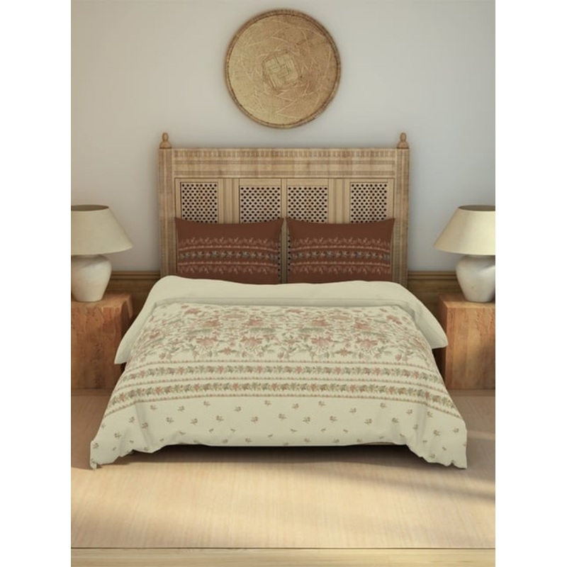 Transform your bedroom into a sanctuary of elegance with the Spaces kashida beige cotton floral double bedsheet. Made from premium 210 tc cotton, this luxurious set includes 2 matching pillow covers for a complete look. The intricate floral design adds a t