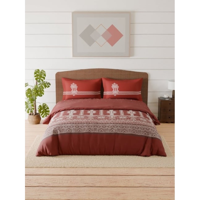 Spaces Minimal Moons Dark Red Cotton Printed 144 TC Double Bedsheet with 2 Pillow Covers
