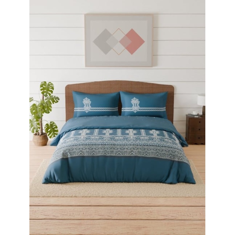 Transform your bedroom into a serene oasis with the Spaces minimal moons dark teal cotton printed double bedsheet. Crafted from high-quality 144 tc cotton, this luxurious set includes 2 matching pillow covers for a cohesive look. The soothing dark teal hue
