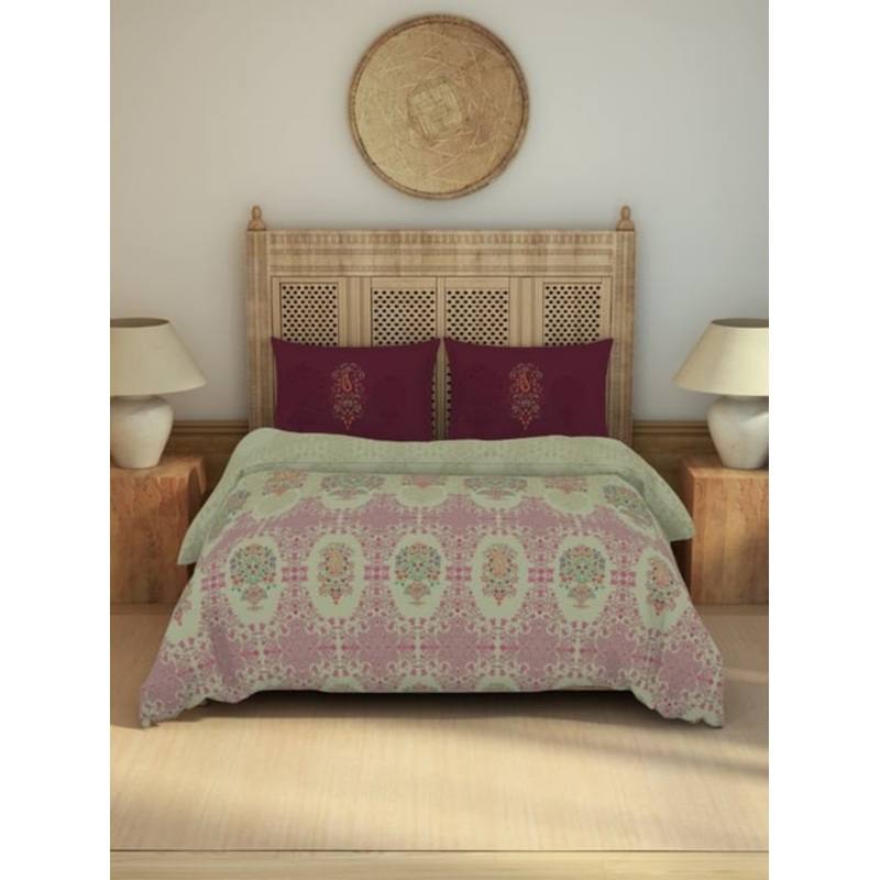 Transform your bedroom into a tranquil oasis with our Spaces paper mache beige cotton floral double bedsheet. Crafted from high-quality 210 tc cotton, this luxurious set includes 2 pillow covers for a complete look. The elegant floral design adds a touch of sophistication to your decor, while the soft and breathable fabric ensures a comfortable night’s sleep. Elevate your bedroom style and experience ultimate relaxation with this beautiful and functional bedding set.