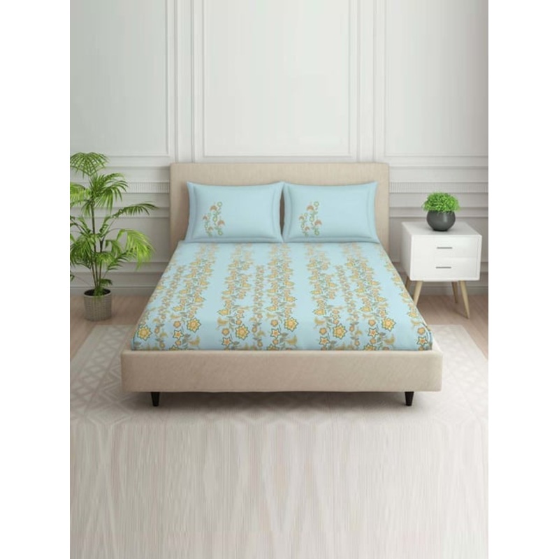 Elevate your bedroom decor with this set of 1 double bedsheet and 2 pillow covers from Spaces. Thoughtfully crafted to add a touch of sophistication, this bedding set promises both style and comfort. The bedsheet and pillow covers are designed to effortlessly complement your room’s aesthetic while ensuring a cosy sleep experience. It is made of 100 percent cotton with a thread count of 144 TC.