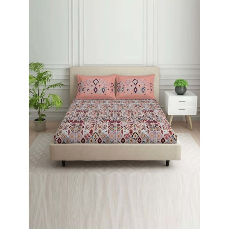 Elevate your bedroom decor with this set of 1 double bedsheet and 2 pillow covers from Spaces. Thoughtfully crafted to add a touch of sophistication, this bedding set promises both style and comfort. The bedsheet and pillow covers are designed to effortles