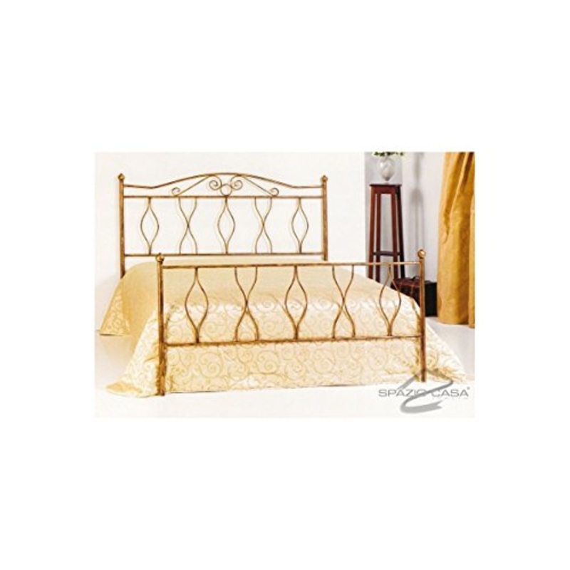 Spazio Casa Letto in Ferro Battuto Carolina – Oro, Matrimoniale (Rete 160×190)