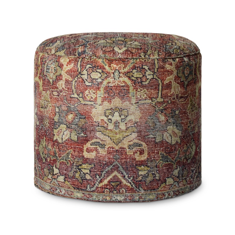 This spice red-toned pouf with a traditional, vintage-inspired design can be used as an accent, an ottoman, or extra seating in your living room or bedroom. The pouf measures 18″W x 18″D x 20″H and is machine-woven in China of easy-to-clean polyester.
