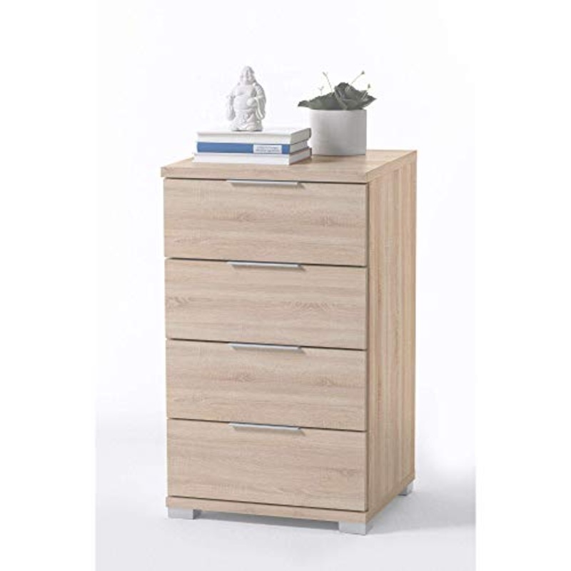 Dettagli: Il pratico comodino universale convince non solo per il suo design semplice e la sua funzionalit, ma offre anche un sacco di spazio di archiviazione attraverso il ripiano e 4 cassetti. Il design a colori permette possibilit di combinazione versat