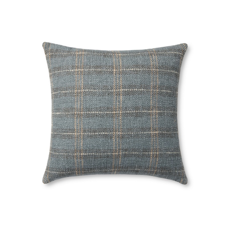 Stockton is a plaid throw pillow from Amber Lewis x Loloi with a muted, rustic palette, a classic pattern for a range of home decor styles, from farmhouse to organic modern. The pillow cover is woven of cotton and other fibers in India and is a versatile s