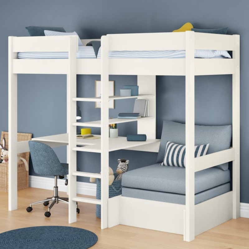 This innovative high sleeper maximizes floor space by raising the sleeping area, creating a cosy nook below that includes a comfortable chair bed, perfect for lounging, reading, or accommodating sleepovers. Designed with functionality in mind, the chair bed easily converts into a sleeping space, ensuring your child always has a comfortable spot for friends to stay over. The included cushion set adds extra comfort, making the chair bed an inviting place to relax during the day.