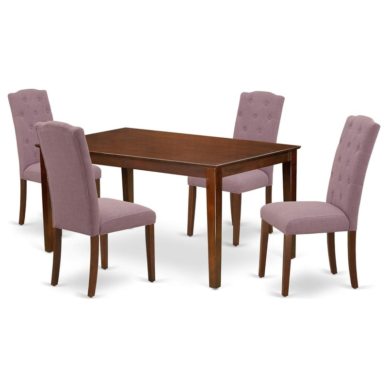 -Gorgeous parsons dining chairs and an amazing 4 legs wooden table to enhance the elegance of your dining room with their awesome design. -The kitchen set has a Mahogany solid wood table and frame and an amazing Dahlia Linen Fabric Button-tufted padded par