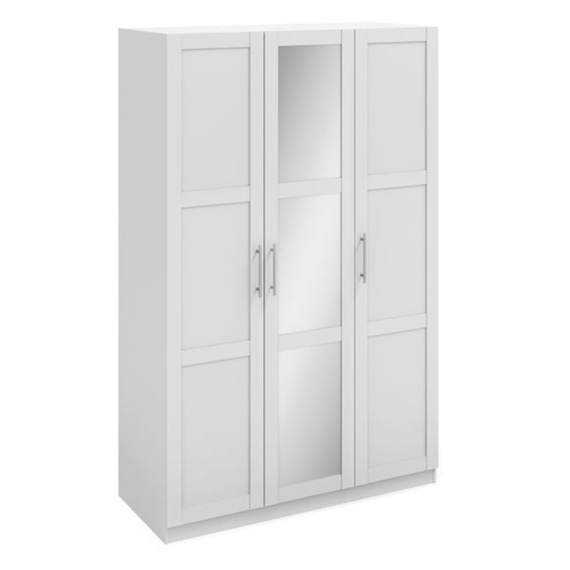 2 hanging rails2 shelvesMetal effect plastic handlesOptional Mirrored frontShaker Framed FrontsVertical Build SystemThis Sudbury Framed Triple Wardrobe offers an extra-height wardrobe with a vertical build system, internal shelves, and sturdy metal door hi