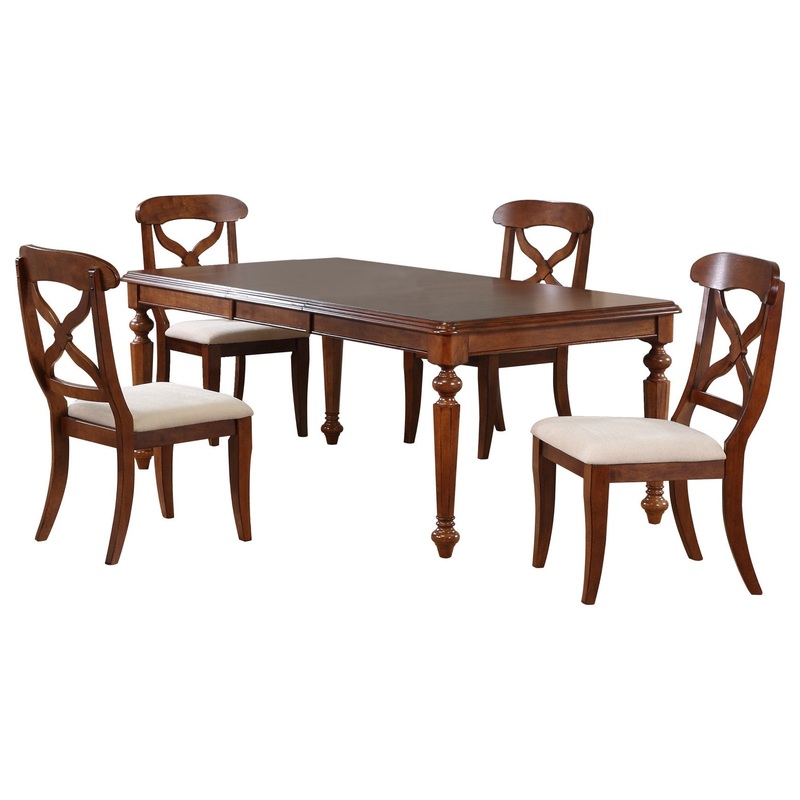 Andrews 5 Piece 76" Rectangular Butterfly Extendable Dining Set | Chestnut Brown | Seats 8Invite an international touch of French Country, British Caribbean and traditional American styles into your home with this versatile dining set from the Sunset Tradi