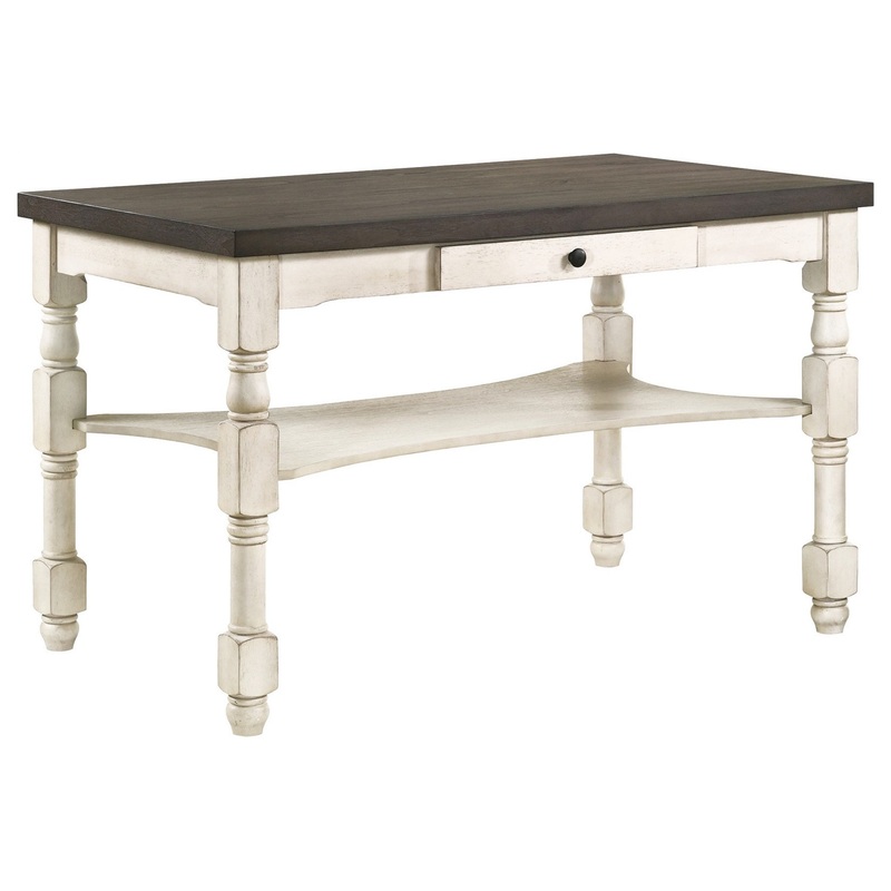 Swan 60 Inch Counter Height Table, Gray Surface, Turned Legs, Ivory WoodCurate style, substance, and sophistication in your dining room with this beautiful counter height table. Crafted from solid wood and veneer, this piece features a dark gray rectangula