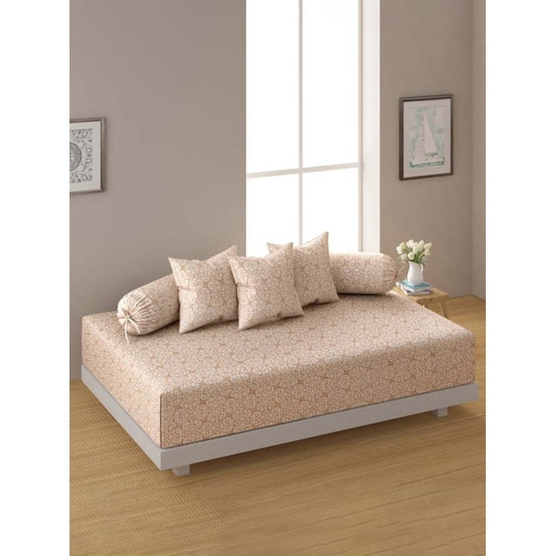 Swayam Ananda Geometric Beige Cotton Single Diwan Set