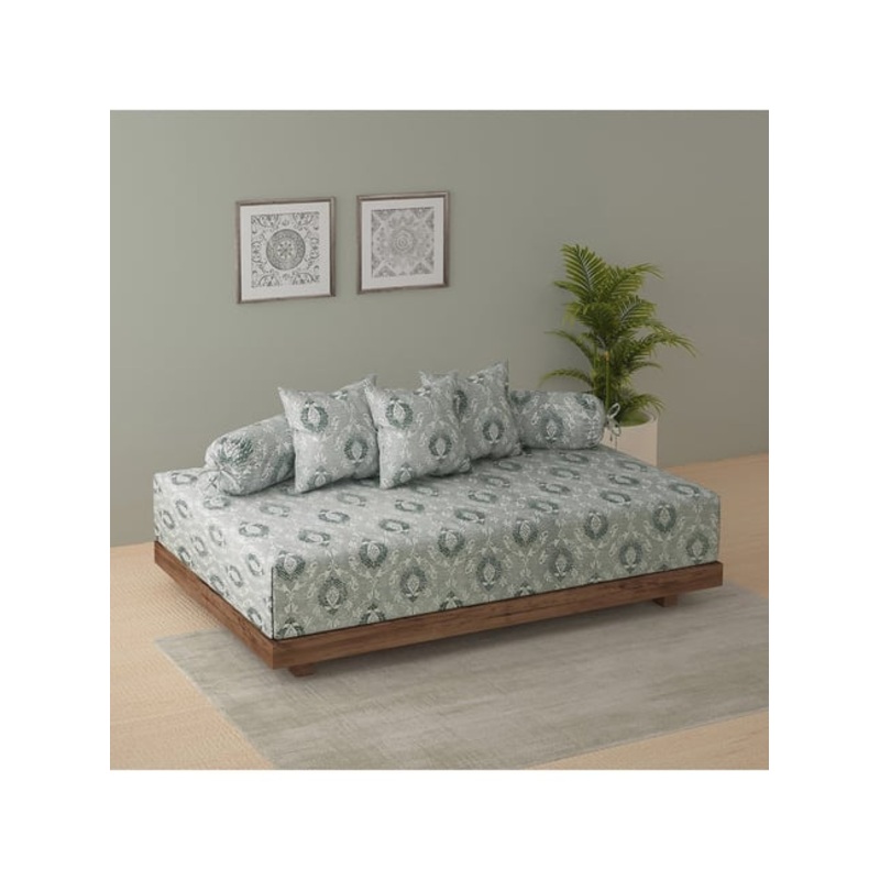 GR4670178236Swayam Ananda Grey Pure Cotton Motif Diwan Set