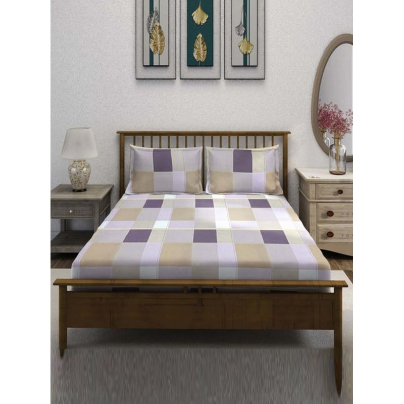 Swayam Ananda Purple Cotton 210 TC 120 GSM King Size Bedsheet With 2 Pillow Covers