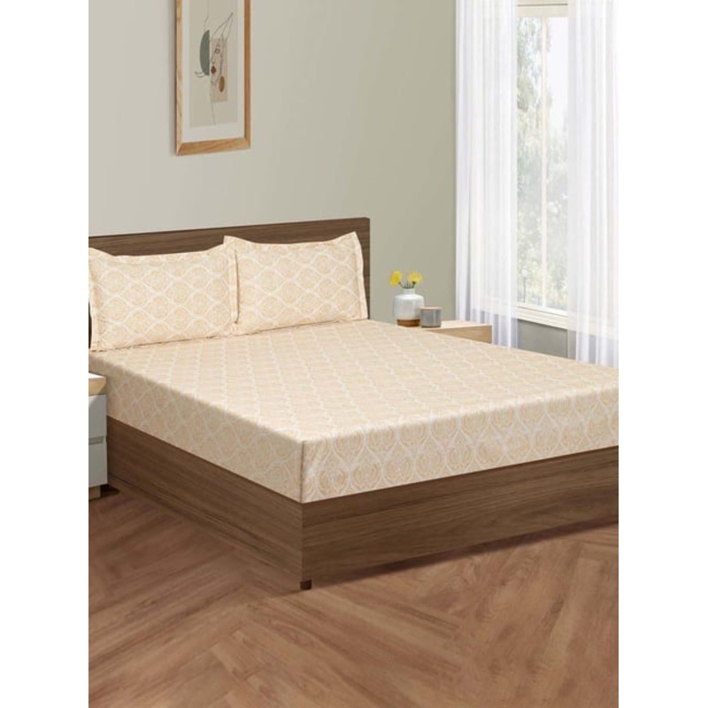 GR4670181177Swayam Beige Cotton 180 TC Double Size Bedsheet With Pillow Covers