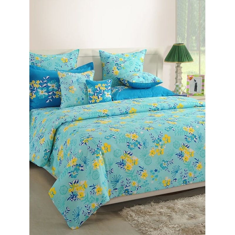 GR4670178900Swayam Blue Cotton Floral Double Bed Sheets 2 Pillow Covers
