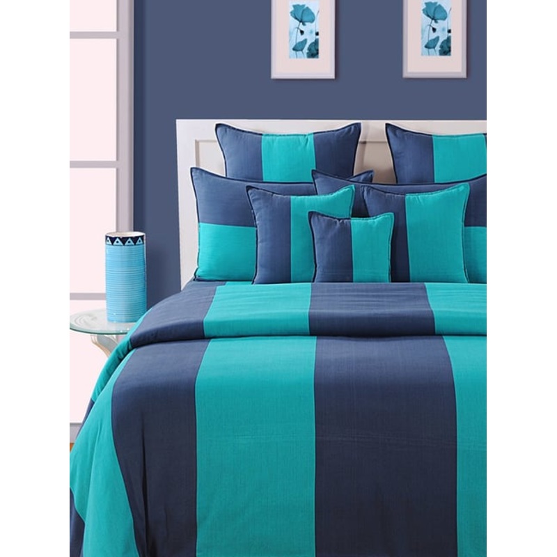 GR4670178720Swayam Blue Cotton Stripes Double Bed Sheets 2 Pillow Covers