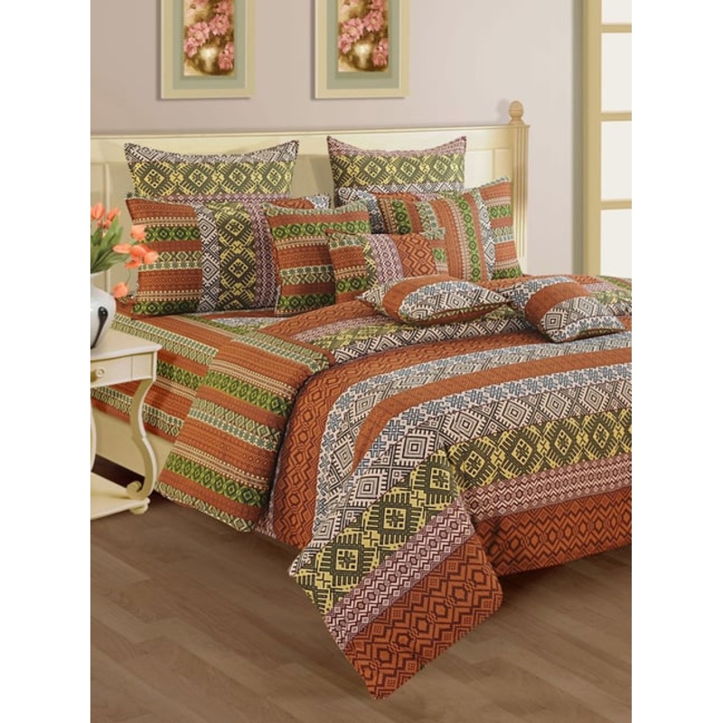 GR4670179250Swayam Brown Cotton Motif King Bed Sheets 2 Pillow Covers