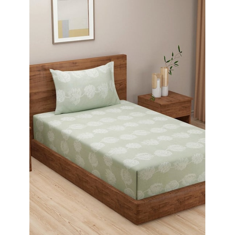 GR4670179959Swayam Green Cotton Blend Floral Single Bed Sheets 1 Pillow Cover