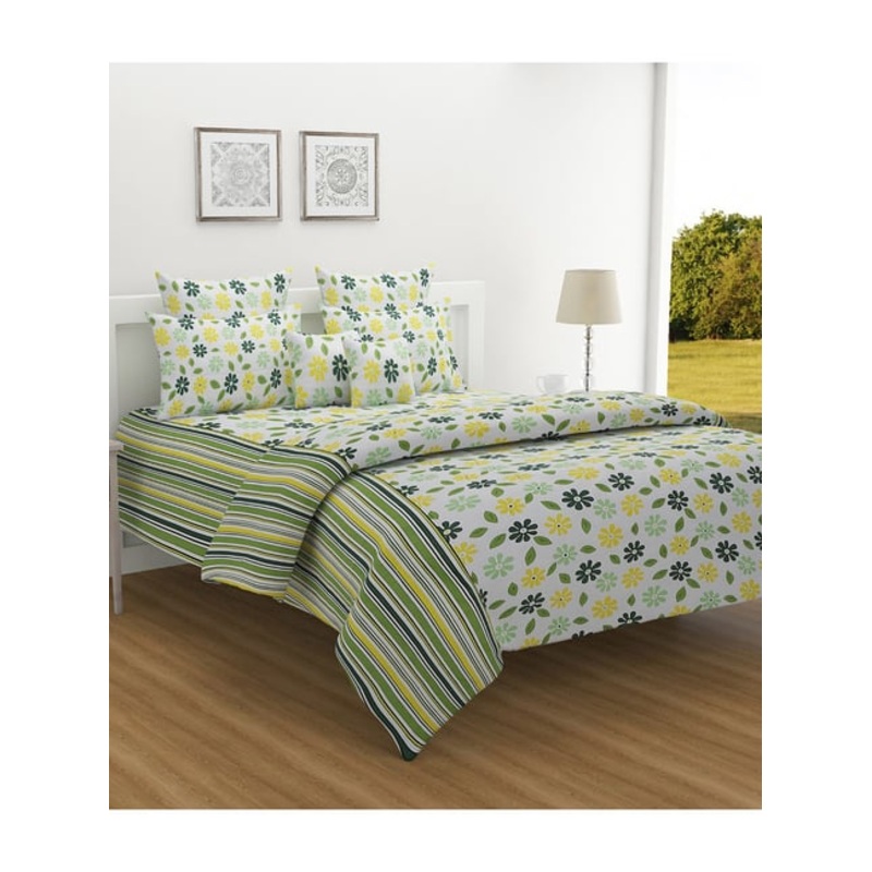 GR4670180079Swayam Green Cotton Floral King Bed Sheets 2 Pillow Covers