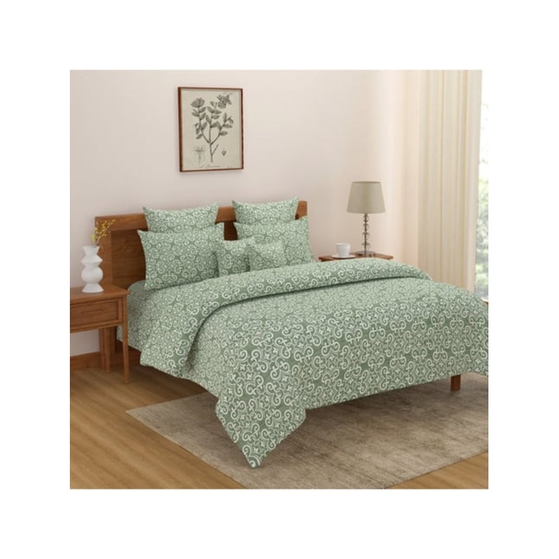 GR4670179387Swayam Green Cotton Geometric King Bed Sheets 2 Pillow Covers