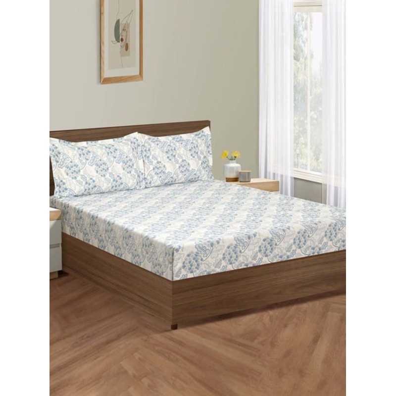 Swayam Grey & Blue Cotton 144 TC Double Size Bedsheet With Pillow Covers