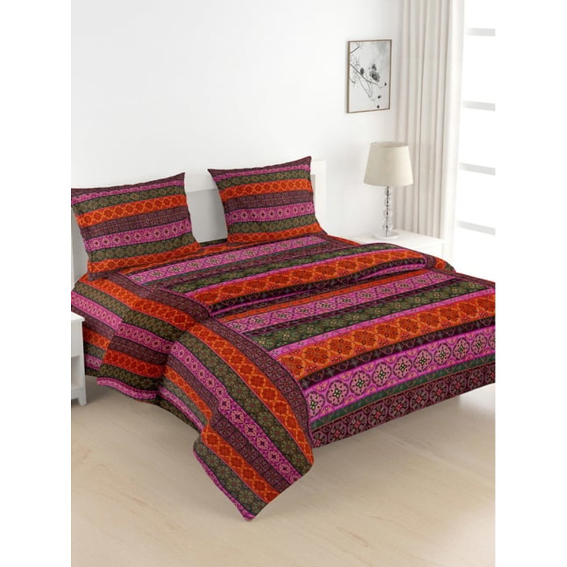 GR4670179704Swayam Orange Cotton Motif King Bed Sheets 2 Pillow Covers